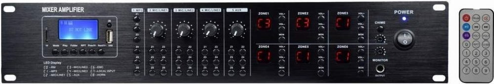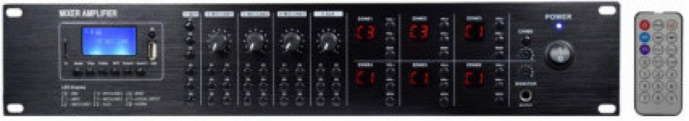Profesionální 6-zónový multiroom zesilovačVýkonný 6-zónový multiroom matrix zesilovač s integrovaným USB/microSD/MP3 přehrávačem, Bluetooth 5.0, FM a DAB+ tunerem nabízí maximální svobodu ozvučení ve veřejných i komerčních prostorách. Umožňuje individuální přiřazení až pěti zdrojů zvuku (4x vstupy + 1x MP3 přehrávač) do libovolné ze 6 výstupních zón o výkonu 120 W každá – ideální například pro restaurace, hotely, penziony nebo obchodní centra, kde každá zóna vyžaduje samostatnou zvukovou kulisu.Díky intuitivnímu směrování signálu můžete jednoduše navolit, co bude hrát ve které zóně. V případě potřeby lze každou zónu posílit externím zesilovačem pomocí výstupů LINE OUT (1–6). Zesilovač podporuje připojení stěnových ovladačů PWC2, které umožňují lokální ovládání hlasitosti, výběr zdroje a Bluetooth streamování přímo v zóně s připojením pomocí CAT5 kabelu do 200 metrů.Technické specifikace:Výkon: 6× 120W RMS / 100V, 8–16ΩVstupy: 3× Mic/Line (XLR/Jack 6,3 mm) se zapínatelným fantomovým napájením 48V, 1× stereo AUX (RCA), Bluetooth 5.0Výstupy: 6 regulovatelných monofonních zón, Monitorovací RCA výstup, Zónové nesymetrické výstupy pro připojení externích zesilovačůKaždý vstup má možnost směrování do libovolné zóny pomocí tlačítek (1–6)Vstupy s nastavitelnou úrovní, citlivostí a 2-pásmovými korekcemiVýstupní ochrany: proti zkratu, přetížení, tepelná ochranaTHD zkreslení: < 0,1 %Odstup signál/šum: > 70 dBTento systém je dokonalým řešením pro profesionální ozvučení, kde je zapotřebí vysoká kvalita zvuku, variabilita a snadné ovládání v každé zóně zvlášť.