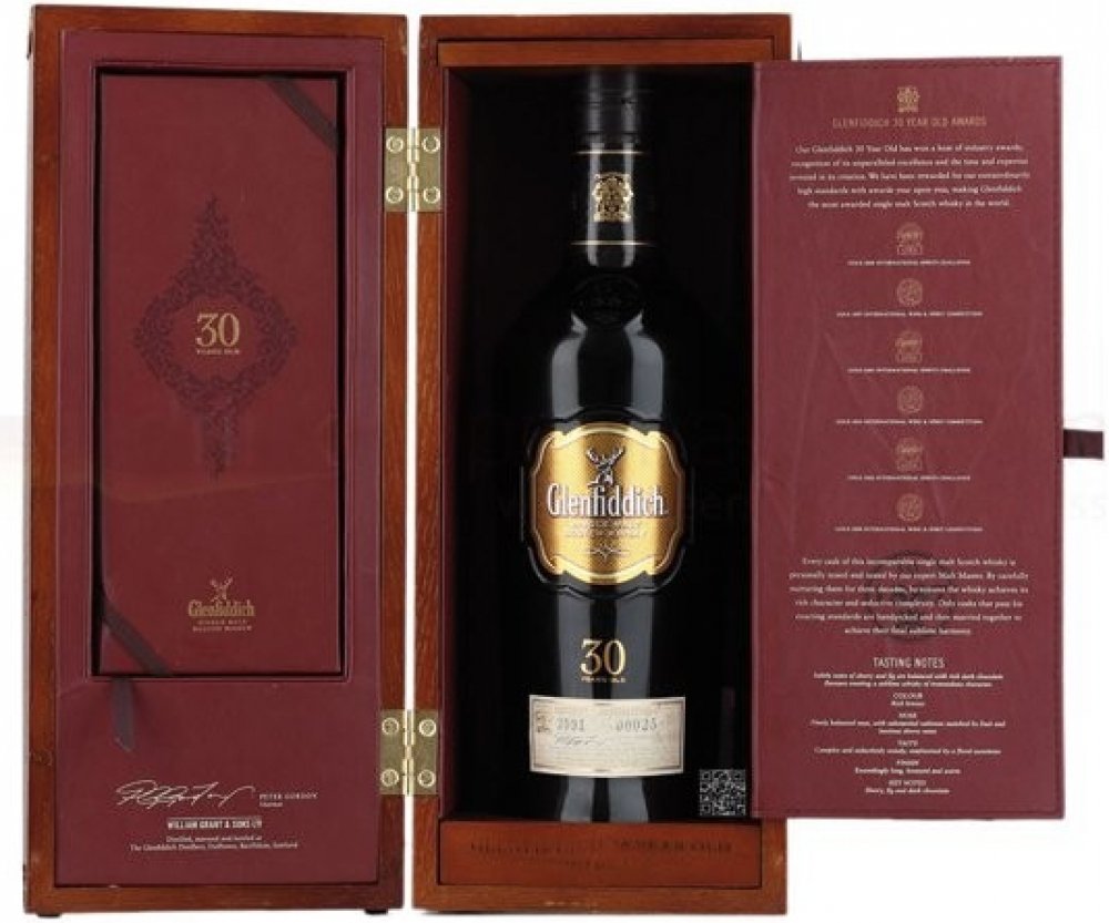 Exkluzivní limitovaná edice skotské 30-leté single malt whisky ze světoznámé destilérky Glenfiddich. Výjimečná whisky, která zrála 30 let ve španělských ex-wine Oloroso a amerických ex-bourbon dubových sudech. Každý sud důkladně zkontroloval a smíchal hlavní Malt Master. Pochází ze známé skotské oblasti Speyside.