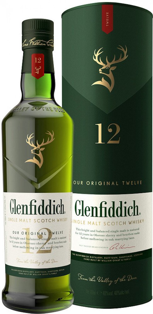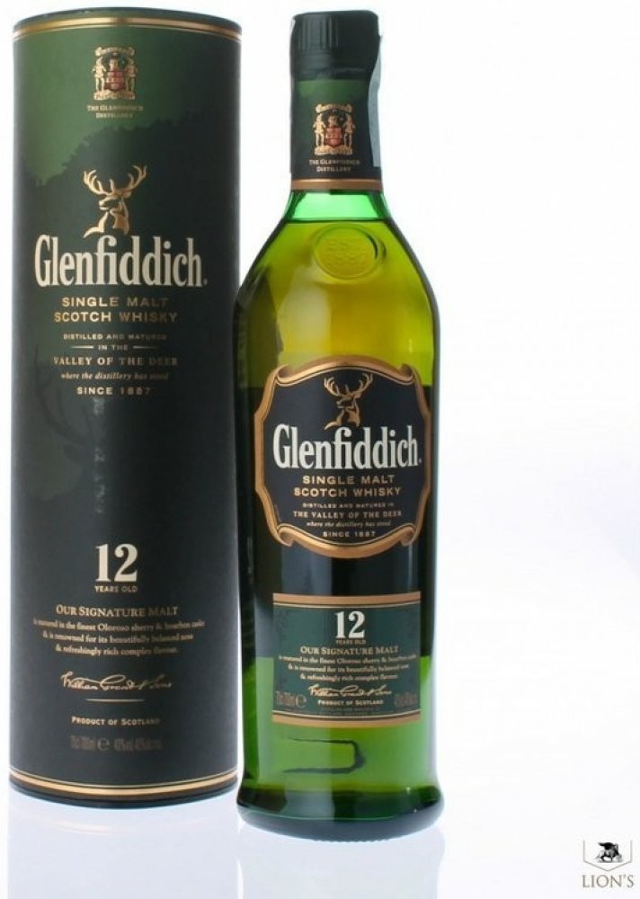 Glenfiddich 12y dominuje kategorii skotských single malt whisky a je to celosvětově nejprodávanější a nejoceňovanější whisky na světě.