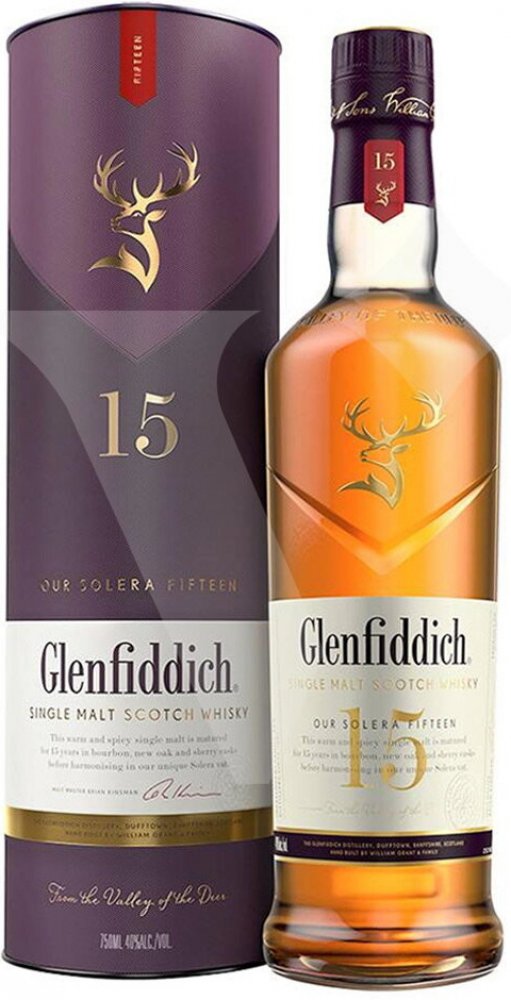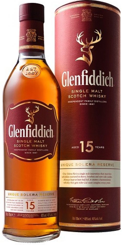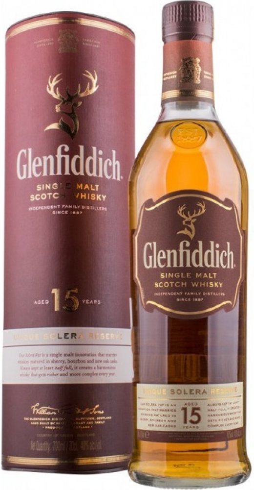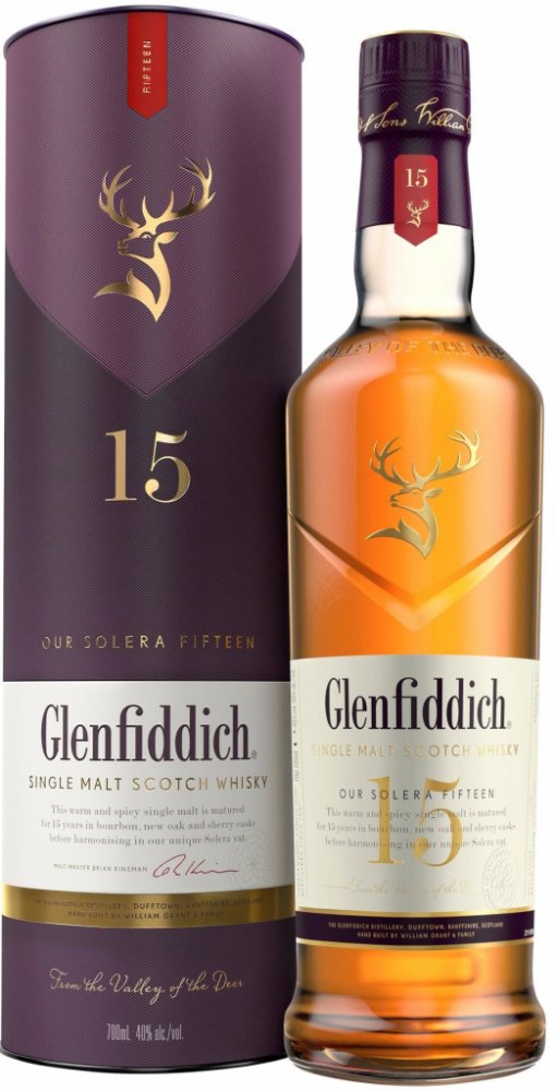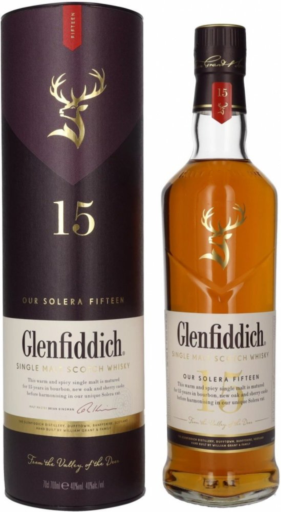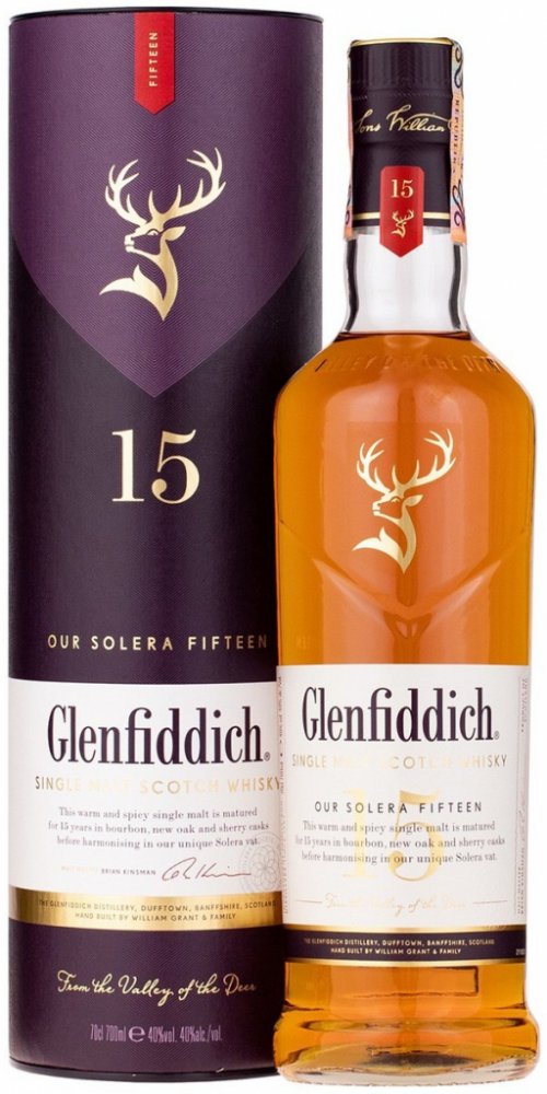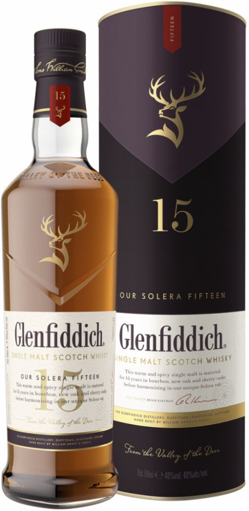 Glenfiddich 15 Years Old Solera je typickým důkazem inovativní tradice rodiny Grantů. Tento single malt zraje tzv. systémem Solera, technikou která dotváří chuťový charakter v obrovské solera kádi. Destilát zraje v sudech po sherry a v nových panenských sudech. Po uplynutí potřebné doby se vše smísí v tzv. Solera vat, což je obrovská káď používaná např. při výrobě sherry nebo portského vína. Solera vat zůstává od roku 1998 vždy naplněná minimálně do půlky, takže se vždy nově přečerpaný destilát ze sudů mísí s již vyzrálou whisky. Díky této unikátní technice není náhodou, že Glenfiddich 15 Years Old je první patnáctiletý single malt, který se drží v desítce nejprodávanějších single maltů světa.