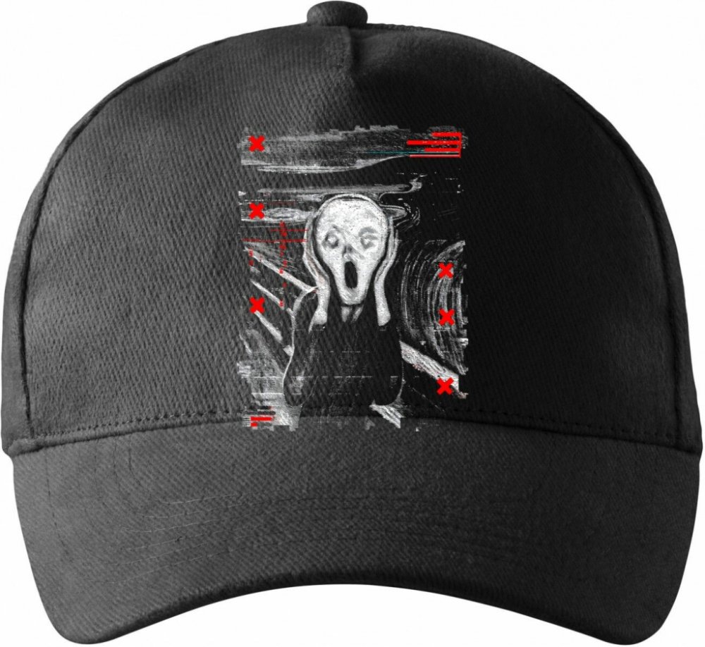 Glitch Art: Výkřik. Munchův ikonický "Výkřik" dostává digitální upgrade. Tato černobílá verze s červenými glitch efekty a rušivými elementy vyjadřuje moderní úzkost ve světě plném technologií. Ideální pro milovníky umění a temné, introspektivní estetiky