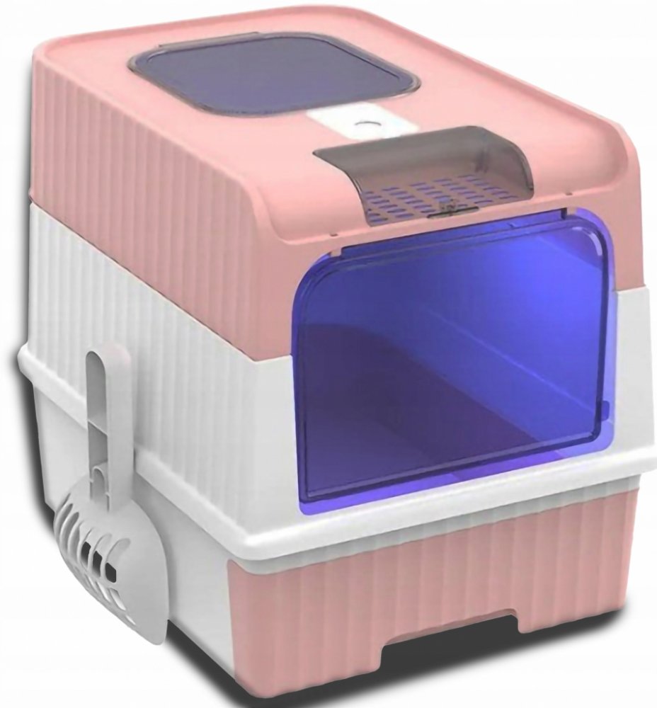VELKÁ UZAVŘENÁ TOALETA PRO KOČKY SE ZÁSUVKOU, BAKTERICIDNÍ LAMPOU A LOPATKOU