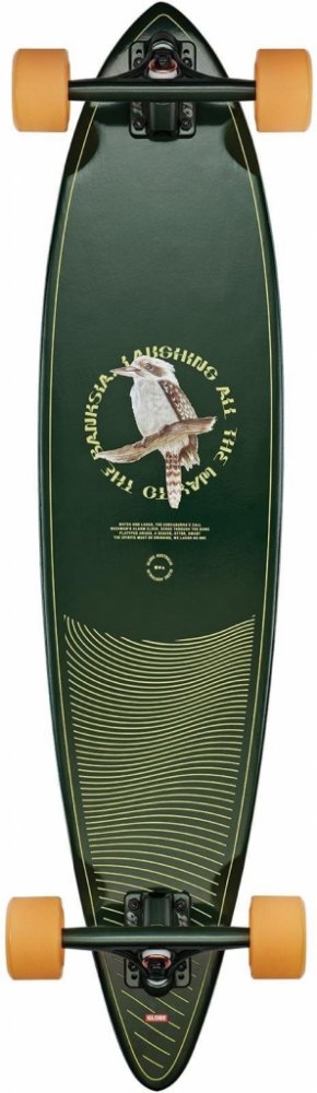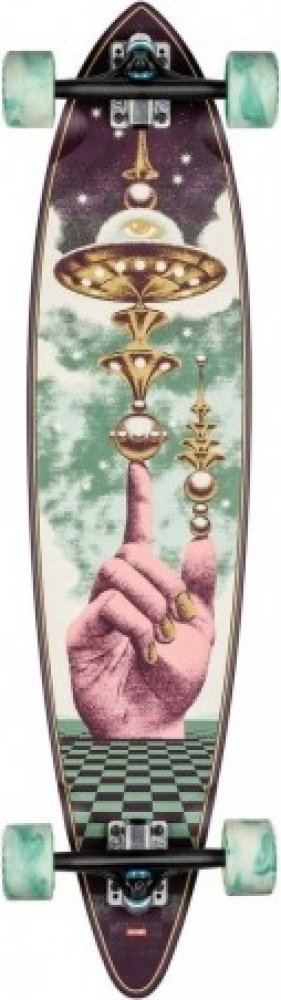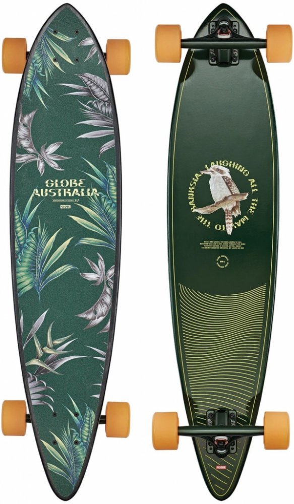 Stylový pintail longboard Pintail Hombre / Shape Faze od Globe je ideální volnou na cesty městem nebo klikatými cestami, ať už jsi začátečník nebo zkušený jezdec. Rovná deska je vyrobená ze 7 vrstev javorového dřeva a je opatřena designovým gripem. Pro lepší stabilitu jsou trucky uchyceny bez podložky zespodu (top mount). Parametry kompletní longboard na cruising, carving deska z 7 vrstev javorového dřeva délka: 37" šířka: 8,5" rozvor koleček: 26,5" rovná (Flat) deska trucky Slant reverse kingpin 7" průměr koleček: 70 mm tvrdost 78a ložiska Globe Abec-7 grip na desce uchycení trucků bez podložky zespodu (top mount) Materiál javorové dřevo, kov, polyuretan Objevte model Pintail 37 v barevném provedení Hombre/Shape Faze, velikost 37,5. Je vybaven palubou z tvrdého javoru Resin-7 s konkávou Flat, 180mm trucky Slant reverse kingpin a 70mm koly Conical Cruiser 78a. Má také černý vysekávaný griptape s vrchním potiskem a dýhy Dye washed.