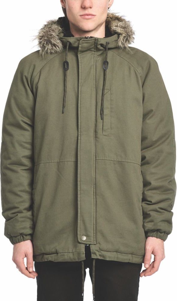 Parka bunda Globe v rovném prodlouženém střihu s předním zapínáním na zip + patentky, prošívanou polyesterovou podšívkou a voděodolným DWR zátěrem. Elastické úplety rukávů, spodek nastavitelný šňůrkou, odnímatelný kožíšek z kapuce. Nášivky na loktech, kvalitní YKK zipy. Složení materiálu: 100% bavlna, podšívka: 100% polyester.