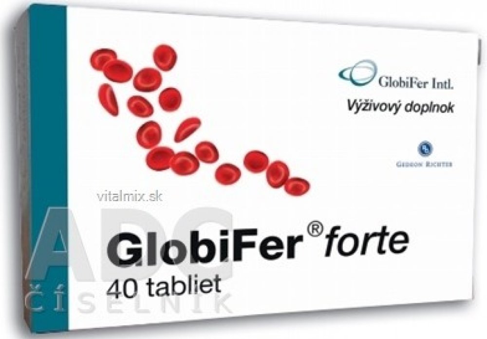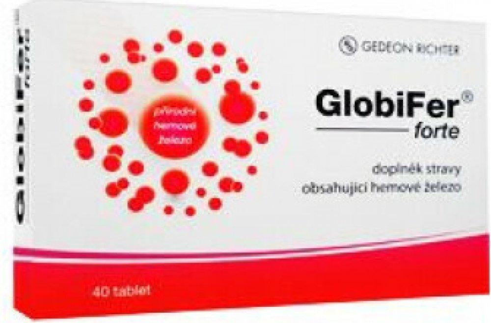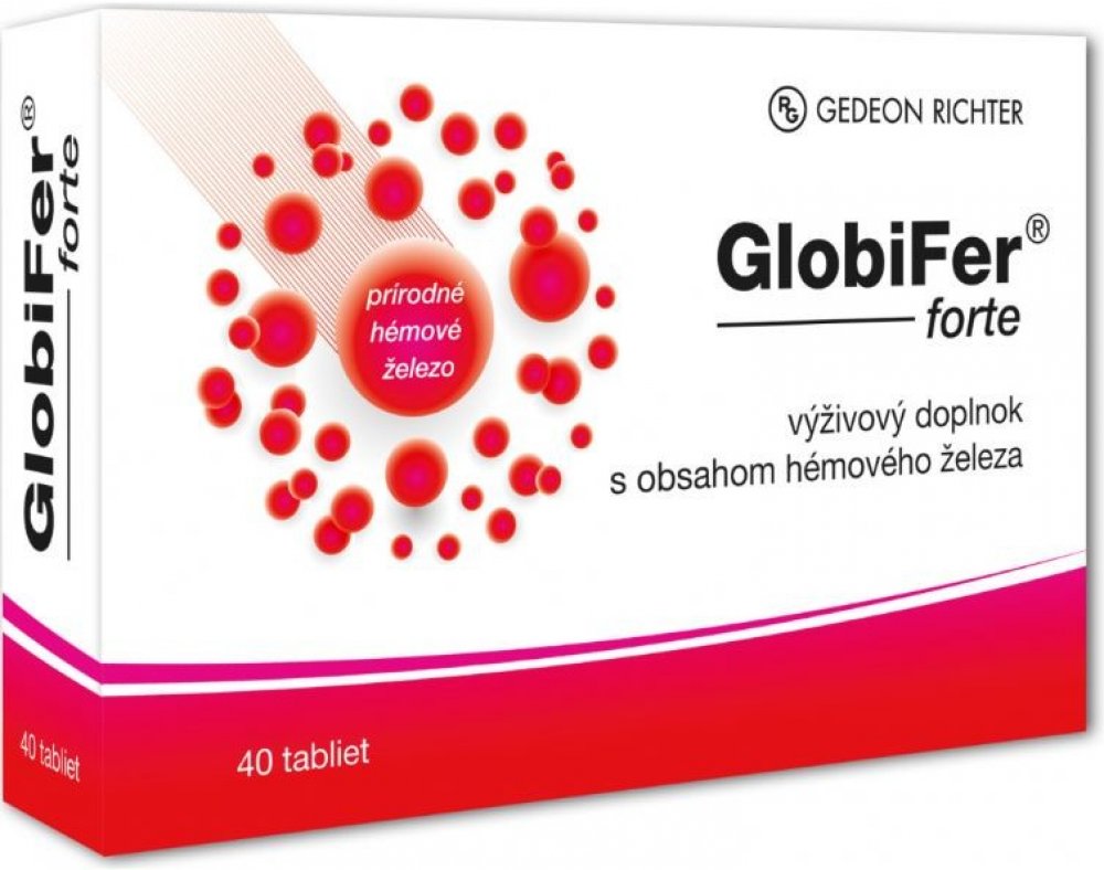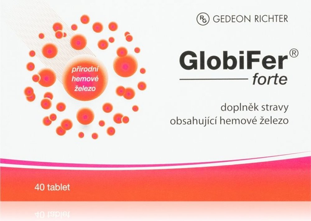 Gedeon Richter 40 tbl tablety krev pro ženy 56 g GlobiFer pro děti a dospívající perorální od 12 let bez příchutě železo imunita a obecné zdraví 20–40 18.0 mg Kdykoliv 1–2× za den Suché místo + pokojová teplota, Chránit před světlem/sluncem, Mimo do…