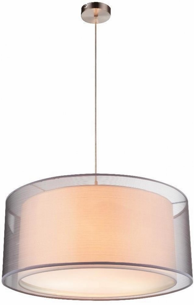 Toto moderní závěsné svítidlo Theo má výšku max 140 cm a průměr 53 cm. Stínítko vyrobené ze šedé textilie a plastu kryje objímky pro tři žárovky E27, které můžou být vybaveny jakýmkoli světelným zdrojem. Dva odstíny vytvářejí velmi zvláštní vzhled. Vnitřní odstín je bílý a vnější odstín je šedý a průhledný.