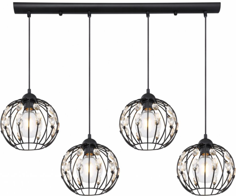 Matná černá závěsná lampa přesvědčí svým retro designem a zároveň zaujme krystaly K9 použitými ve stínítku. Čtyři černá kovová stínidla ve tvaru mřížky navíc vytvářejí zajímavý stínový vzhled na vašich stěnách. Svítidlo má celkovou délku 120 cm a zaručeně upoutá pozornost ve vašem jídelním a obývacím prostoru. Volným výběrem žárovek (E27/max. 4 x 60W) si sami určíte intenzitu a barvu světla tohoto interiérového svítidla. Vzhledem k jejich dlouhé životnosti doporučujeme používat LED žárovky. S dalšími modely z této řady můžete ještě vylepšit image svého obytného prostoru.