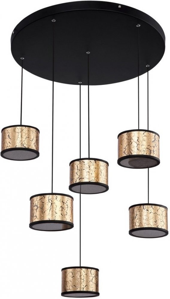 Táto elegantná závesná lampa ponúka kombináciu prvkov zlatej ačiernej farby. Špeciálna konštrukcia kombinuje starožitný dizajn smodernou eleganciou. Číre plastov kryštály sa trblietajú po zasvietení. Lampa pritiahne pozornosť každého návštevníka aponúka príjemné neutrálne svetlo.