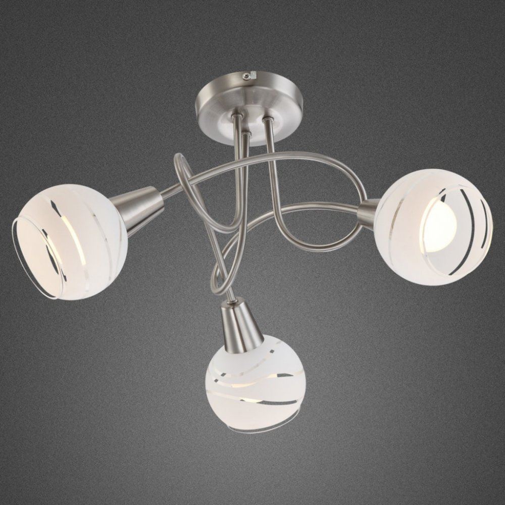 Stropní svítidlo, nikl matný, satinované sklo, včetně 10641, Ø390, V:245, včetně žárovek 3xE14 LED 5W 230V, 320lm, 3000K.