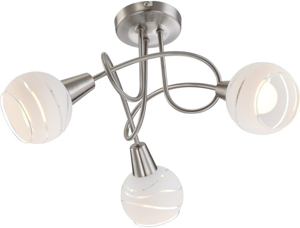 Výška: 245 mm, Šířka: 390 mm, Průměr: 390 mm, Ochrana IP: IP20, Barva světla: 3000K, Příkon sv. zdroje: 5W, Celkový příkon: 15W, Napětí: 230V, Patice: E14, Vč. světelného zdroje: ano, Materiál: kov / sklo, Barva: nikl / satinovaná, Kolekce: ELLIOTT, Počet světelných zdrojů: 3