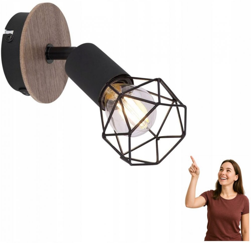 - Svítidlo je vyrobeno z kovu v matné černé barvě a dřeva.