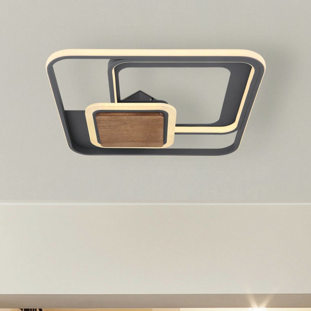 - Svítidlo je vyrobeno z kovu v grafitové barvě, dřeva a opálového plastového difuzoru.