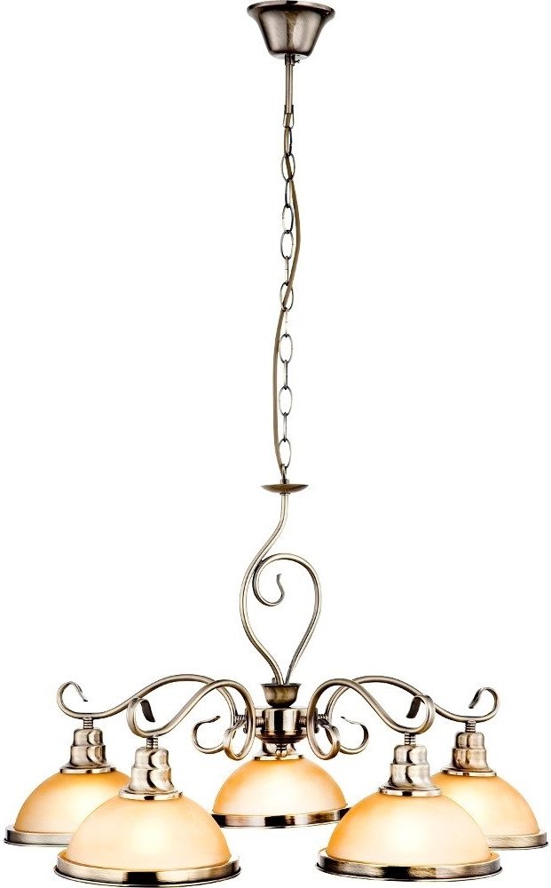 GLOBO 6905-5 SASSARI závěsné svítidlo GLOBO 6905-5 SASSARI závěsné svítidlo je zhotoveno z kvalitních materiálů - antické mosazi a jantarově žlutého skla. Stínidlo je zdobeno mosazným okrajem. Zdroj není součástí svítidla. Doporučená pro toto svítidlo je žárovka 5x60W s paticí E27. Lze nahradit LED zdrojem. Závěsné svítidlo GLOBO 6905-5 ze série SASSARI bude zajímavým doplňkem Vaší místnosti. Toto...