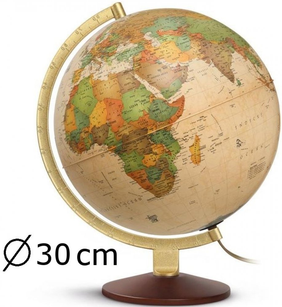 Světelný glóbus, soudobá politická mapa antického vzhledu s vyznačením plaveb dávných mořeplavců. Půlpoledník – imitace kovu, podstavec je z afrického dřeva.Průměr 30 cmVýška 40 cmMěřítko: 1 : 42 500 000Popisky – český jazykSvětelný glóbus, soudobá politická mapa antického vzhledu svyznačením plaveb dávných mořeplavců.Půlpoledník – imitace kovu, podstavec je z afrického dřeva.Vyrobeno v EU.