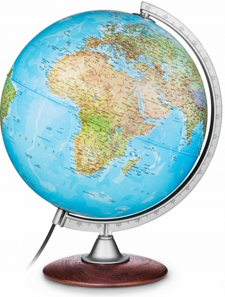 Světelný globus, zeměpisná mapa, po rozsvícená mapa politická.