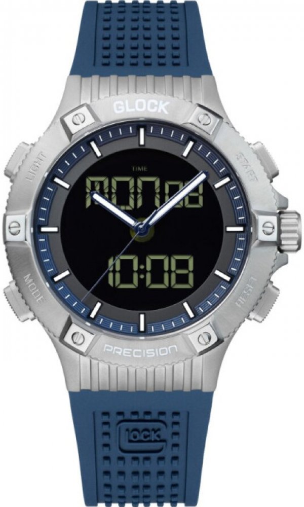 Glock silikon ocel safírové pánské bateriové - quartz modrá modrá s elektrickým podsvícením