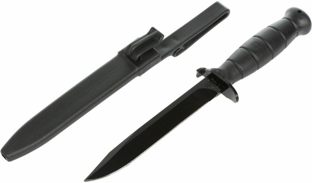Glock FM 78 je klasický armádní univerzální nůž s pevnou čepelí, který je určený pro všestranné použití. Čepel je vyrobena z kvalitní oceli kalené do tvrdosti 55 HRC s povrchovou úpravou v matně černém provedení. Rukojeť je ergonomická, vyrobena z hladkého polymeru. Otvor na šňůrku je umístěný na konci rukojeti. Na rukojeti se nachází dvojitá záštita, díky které jsou chráněny prsty proti sklouznut...