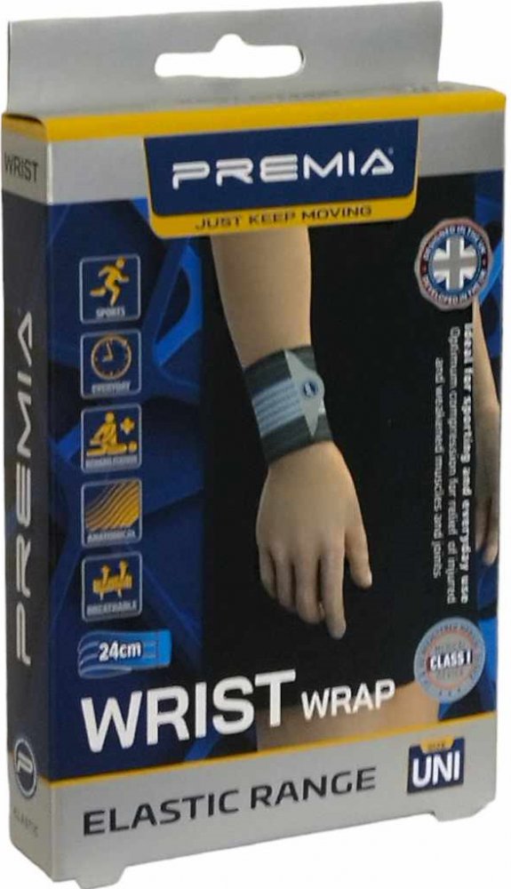 Elastický kompresní obvaz na zápěstí PREMIA WRAP poskytuje cílenou kompresi a stabilizaci při úrazech, namožení a chronických problémech zápěstí. Je vyroben z extra silné elastické tkaniny s pružnými nylonovými vlákny, která jsou prodyšná a odolná. Suchý zip umožňuje rychlé přizpůsobení tlaku podle potřeby. Bandáž je univerzální pro pravou i levou ruku.