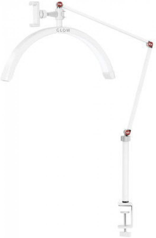 Lampa pro ošetření Glow s možností montáže na pracovní desku je vybavena unikátní hlavicí ve tvaru oblouku, která zajišťuje vynikající osvětlení při procedurách vyžadujících přesnost.
