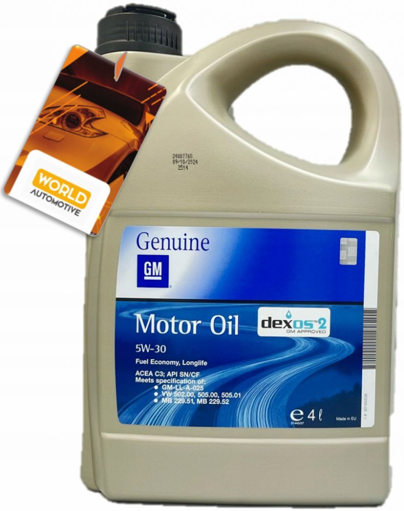 OPEL GM DEXOS2 5W-30 5L je syntetický motorový olej speciálně vyvinutý pro osobní a lehké užitkové automobily GM (Opel, Chevrolet, Buick atd.) naftové nebo benzinové. Olej dodávaný do prvovýroby GM (Opel, Chevrolet, Saab). Poskytuje mimořádně vysoký čistící výkon, ochranu proti opotřebení a ještě lepší úsporu paliva.