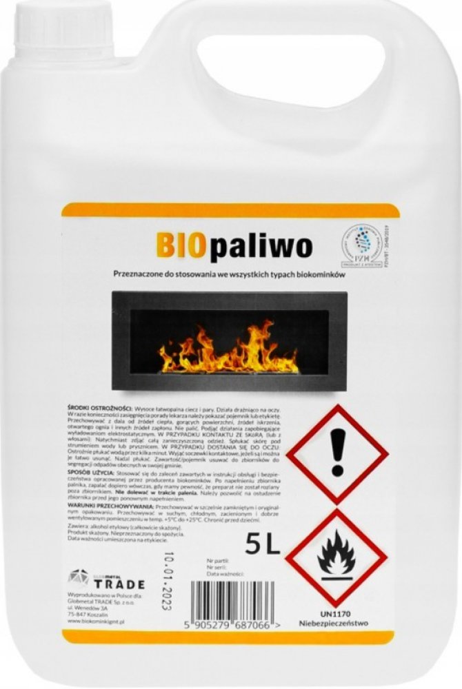 Palivo do biokrbů je speciální palivo určené do krbů na bioethanol. Hoří přirozeným plamenem bez sazí a zápachu, při hoření vzniká pouze oxid uhličitý a voda. Líh obsažený v přípravku je vyroben z přírodních a tedy obnovitelných zdrojů. 1 litr paliva vystačí minimálně na 3 až 5 hodin hoření v závislosti na výkonu biokrbu. Vhodné především pro použití v interiéru. Palivo se do hořáků plní pouze po jejich vychladnutí, doplňování paliva během hoření je zakázáno! Při plnění a zapalování dbejte pokynů výrobce krbu. Menší prostory je doporučené krátce větrat.