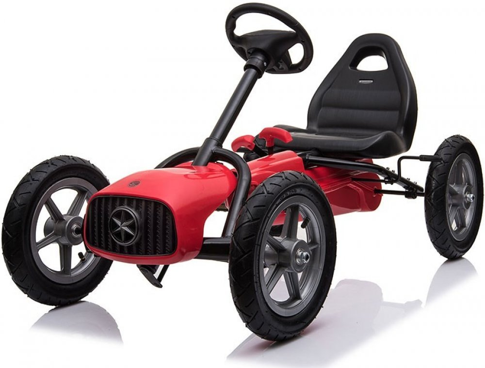 Velké nafukovací pneumatiky zajistí komfort a pohodlí při jízdě na jakémkoli povrchu. Motokára má zabudovaný řetězový pohon s možností odpojení pohonu - funkce volnoběžky a ruční brzdu na zadní nápravě.