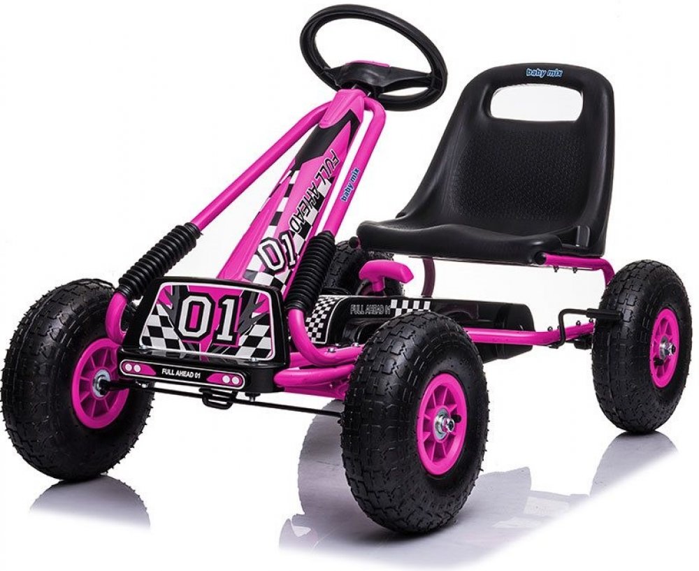 Velké nafukovací pneumatiky zajistí komfort a pohodlí při jízdě na jakémkoli povrchu. Motokára má zabudovaný řetězový pohon s možností odpojení pohonu - funkce volnoběžky a ruční brzdu na zadní nápravě.