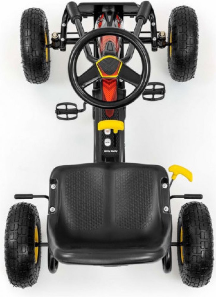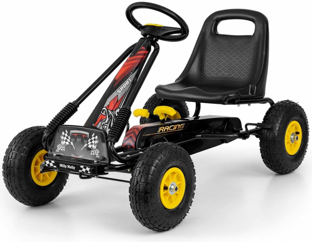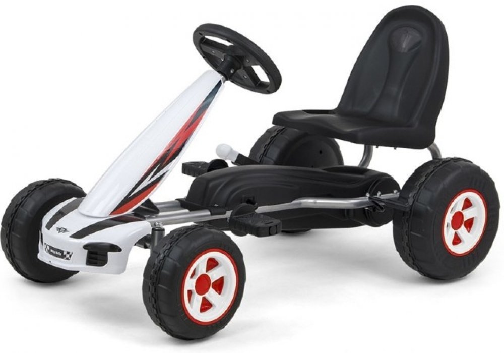 Velká sportovní motokára na pedály byla navržena pro nejmladší řidiče a fanoušky rychlé jízdy. Lehká kovová konstrukce zakončená plastovými kryty ve sportovním stylu dodá řidiči elegantní nádech. Kbelíkové sedadlo s nastavitelnou vzdáleností od volantu - poskytuje pohodlí a umožňuje přizpůsobit vozidlo výšce řidiče. Kompaktní volant usnadňuje ovládání vozidla a velké nafukovací pneumatiky zajistí pohodlí a komfort na jakémkoli povrchu.