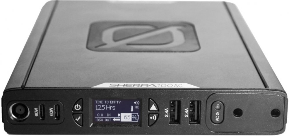 Sherpa 100 AC je vybavena barevný LCD displejem a intuitivním ovládáním. Robustní konstrukce zaručuje, že Vás powerbanka nezradí ani ve velmi náročných podmínkách. Na rozdíl od velkých lithiových baterií splňuje Sherpa 100AC podmínky letecké přepravy a můžete ji vzít bez obav do příručního zavazadla na palubu letadla. Vyrazte do světa bez obav, že vám dojde energie.