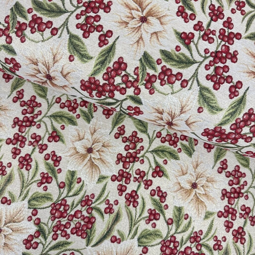 Gobelín Vánoce – Lurex zlatý – Růže a bobule