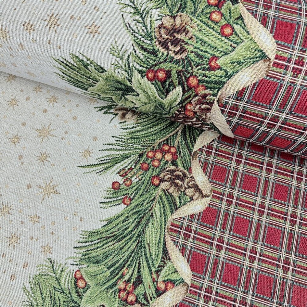 Gobelín Vánoce Ubrus - Vánočené karo s hvězdami a šiškami
