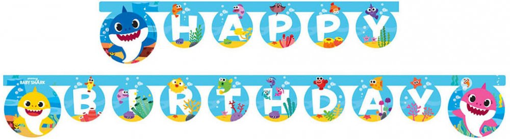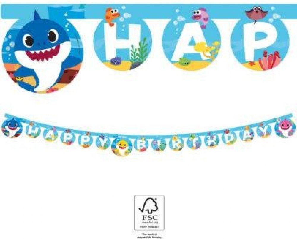 Girlanda Happy Birthday - Baby Shark. Délka 2 m.