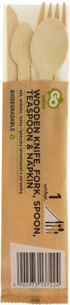 Godan Dřevěné jednorázové příbory sada ubrousek