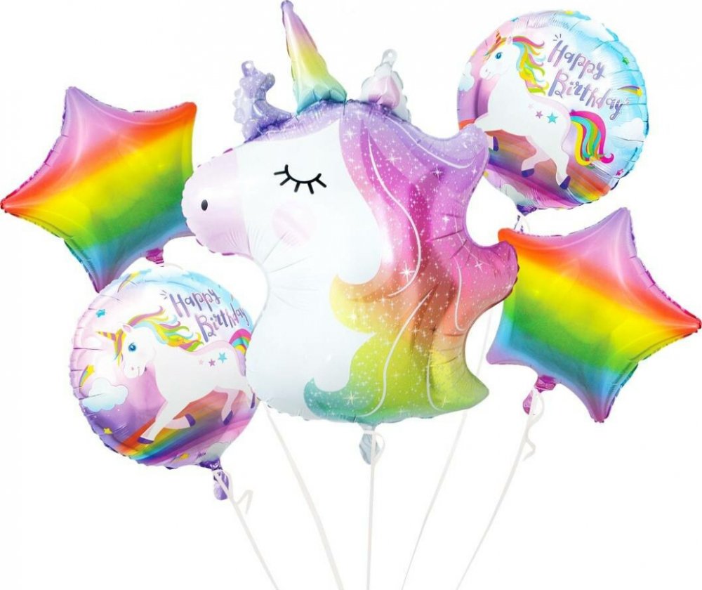 Cukrářské potřeby a suroviny pro sladké pečení. Produkt pro domácí cukráře: Fóliové balónky - sada jednorožec, narozeniny, 5 ks - Godan ,