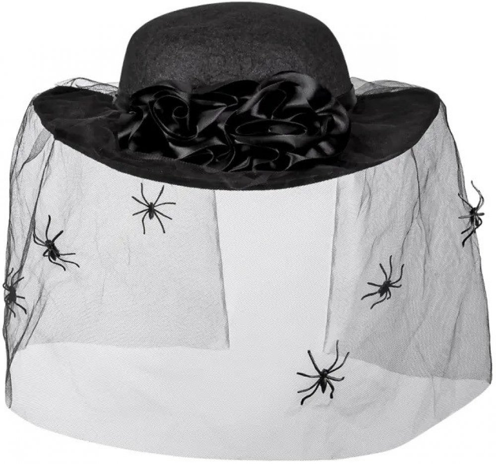 Klíčové vlastnosti doplňku ke kostýmu Boland, dámský černý klobouk se závojem a pavoukyVyroben z polyesteruVhodný pro dospěléV černé barvě