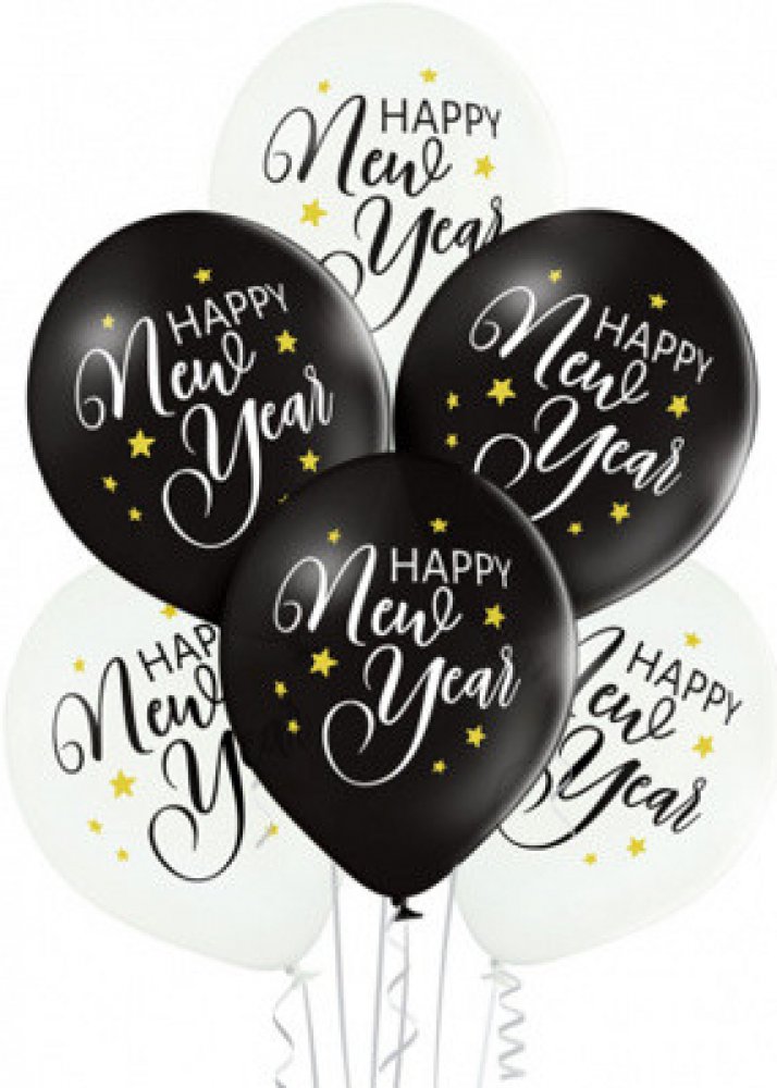 Godan Latexové balonky bílo černé Happy New Year 30 cm