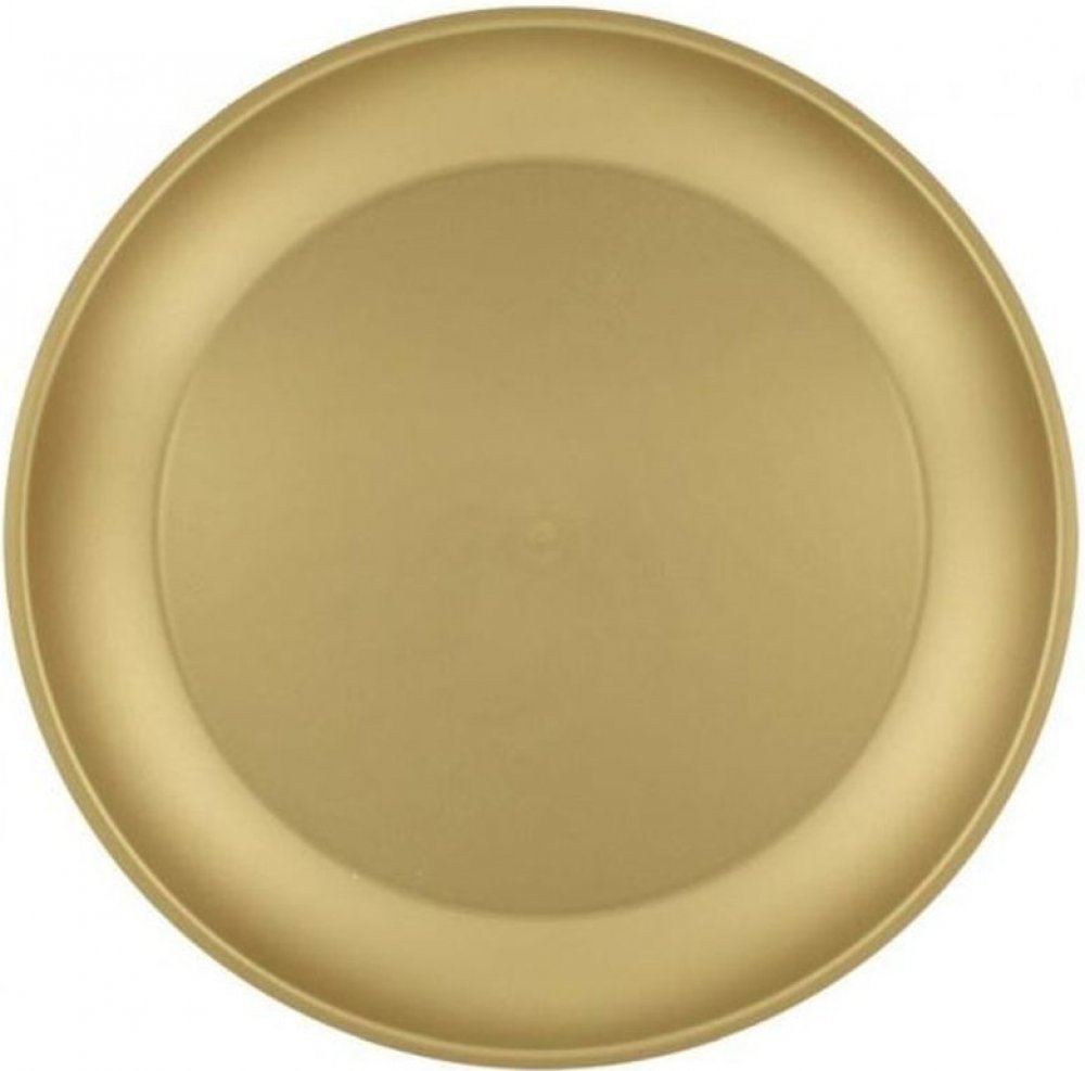 Zlatý plastový talíř o průměru 21 cm pro opakované použití.