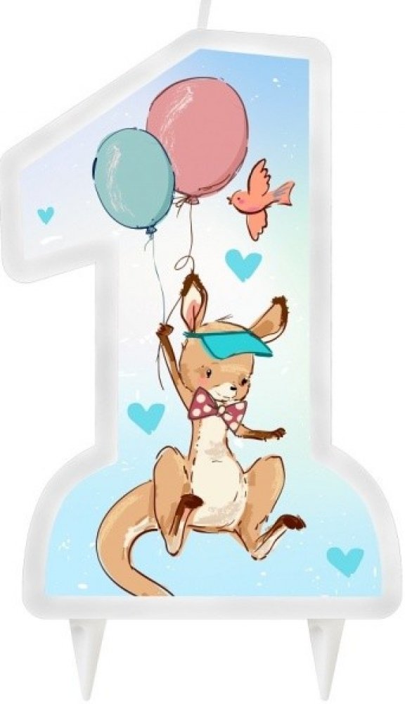 Krásná svíčka čísla 1 v modré barvě s klokanem a balónky se bude dobře vyjímat na každém narozeninovém dortu při oslavě 1. narozenin vašeho chlapečka. Protože žádné narozeniny se neobejdou bez krásného dortu, který musí zdobit ještě krásnější svíčka. Výška svíčky: cca 13 cm V naší nabídce si vyberete mnoho dalších doplňků a dekorací pro snadnou kombinaci s touto tématikou.