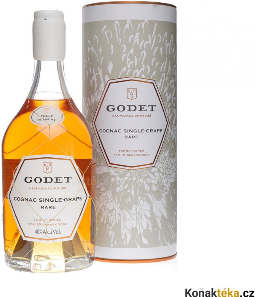 Rodinný dům Godet (La Rochelle, od roku 1588) touto edicí vzdává hold původnímu stylu koňaku, kdy byla Folle Blanche dominantní odrůdou před révokazovou kalamitou. Jednoodrůdové zpracování (Single Grape) umožňuje naplno vyniknout charakteru této aromatické a svěží révy.