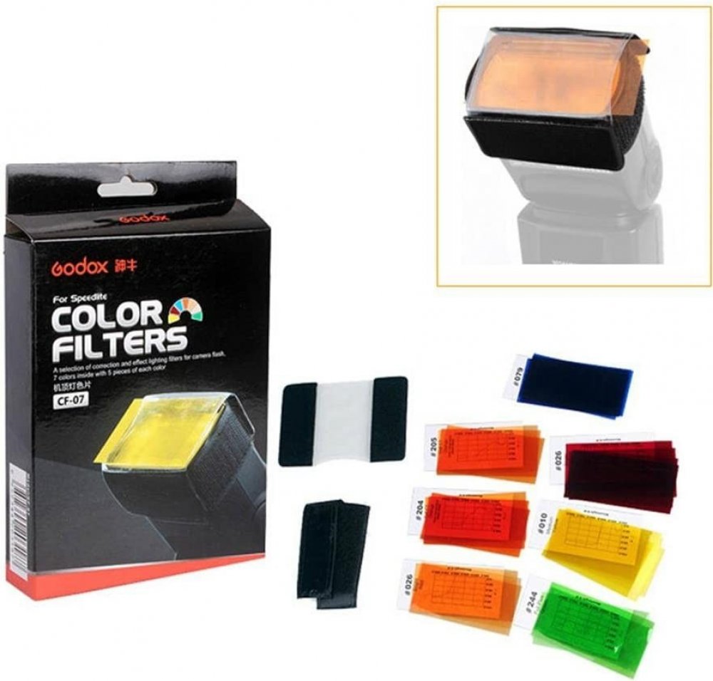 Sada filtrů Godox CF-07 pro blesk Speedlite 39*80 mmSada filtrů Godox CF-07 obsahuje 7 barevných filtrů v různých barvách: Žlutá, zelená, červená, modrá, oranžová Full CT, oranžová Half CT a oranžová Quarter CT. Tyto filtry se snadno nasazují a díky pásku na suchý zip je lze rychle připevnit k zábleskové jednotce. Jsou vhodné pro většinu zábleskových jednotek dostupných na trhu.Použití:Ideální pro zlepšení tónu pleti při fotografování portrétů.Pro korekci barev a přizpůsobení okolnímu světlu.Pro simulaci různých typů světla a pro speciální efekty.Ideální pro falšování vyvážení bílé barvy.Filtry lze použít samostatně nebo v kombinaci, aby byla barva světla ještě intenzivnější. Sada CF-07 je nejlepší volbou pro ovládání barvy světla v různých scénách a umožňuje kreativní design osvětlení.Rozsah dodávky:7 filtrů (5 od každé barvy: žlutá, zelená, červená, modrá, plná CT oranžová, poloviční CT oranžová, čtvrtinová CT oranžová)PouzdroZapínání na suchý zip