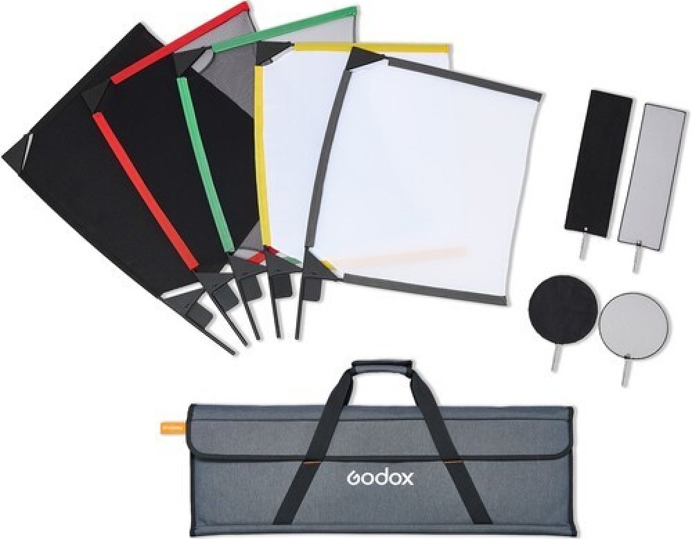 V sadě najdete také hedvábné difuzory s útlumem 1 a 2 EV pro jemné rozptýlení a černé sítě s útlumem 1 a 2 EV k redukci intenzity světla a dodání jemného kontrastu. Godox dále dodává pevné černé plátno určené k blokování nebo "vyřazení" nechtěného světla ze záběru. Sada je ideální pro práci s drobnými předměty nebo tabletopovou fotografii a obsahuje také černý disk o průměru 15 cm a černou síťovou tečku, stejně jako pevný černý proužek a černýsíťový strip o rozměrech 10 x 35 cm. Vše se vejde do chytře navrženého přenosného pouzdra, které umožňuje snadný výběr díky viditelnému barevnému kódování.