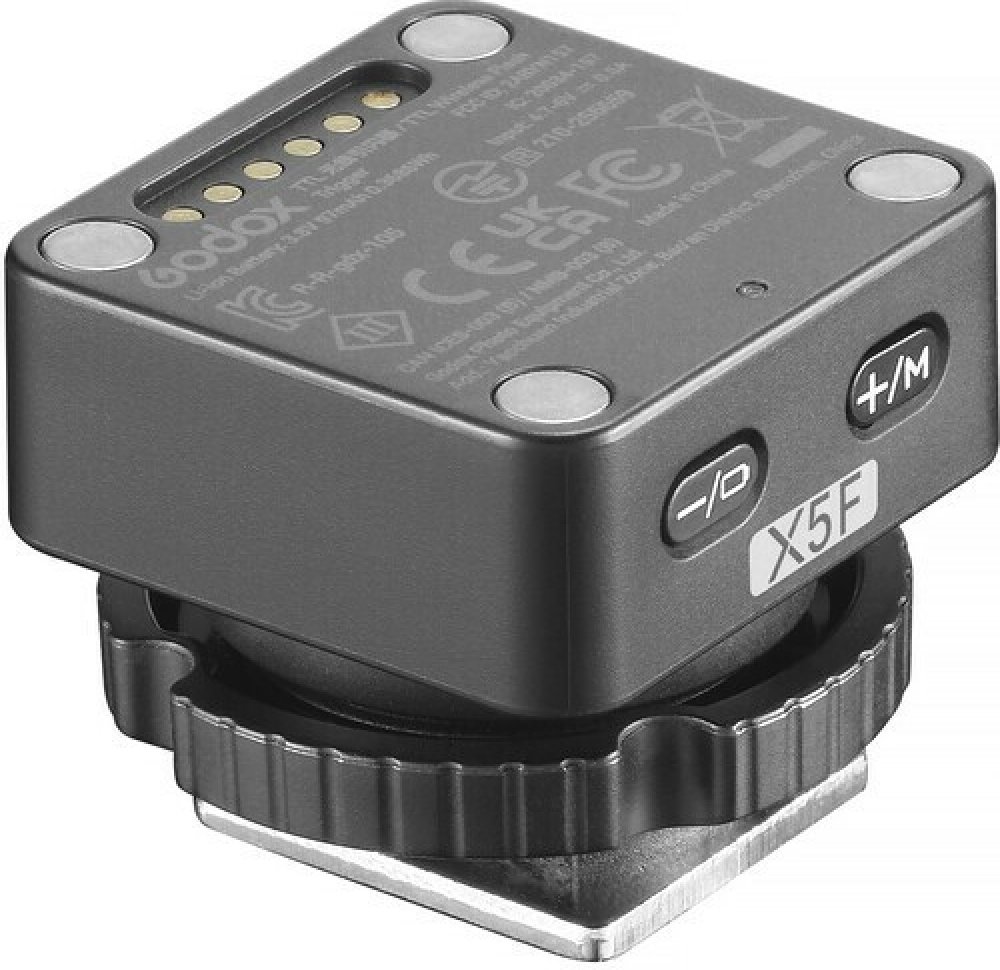 Godox X5F je bezdrátový TTL spouštěč blesků navržený pro použití se samostatně prodávaným bleskem iT32. Patice X5F je kompatibilní s vybranými fotoaparáty FUJIFILM a umožňuje magnetické připojení k blesku iT32, čímž přidává funkci hot shoe a bezdrátové spouštění. Připojení je jednoduché: stačí přiložit X5F ke spodní části blesku iT32, který jej automaticky magneticky uchytí. Poté otočte pojistný kroužek spouštěče, vložte X5F do patice fotoaparátu a zajistěte otočením kroužku do zamčené polohy.