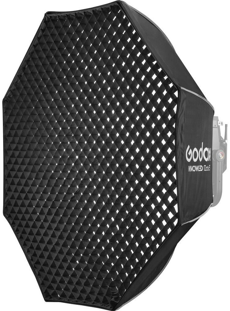 Softbox Godox Knowled 5' Octa s mřížkou je určen pro LED panel P600R a díky reflexnímu stříbrnému vnitřku poskytuje měkké, lichotivé osvětlení. Součástí balení je mřížka 40°, která umožňuje přesné řízení směru světla, což je ideální pro profesionální fotografování a videografii.Vylepšete své osvětlení pomocí softboxu Godox Knowled 5' Octa Softbox, který byl speciálně navržen pro LED panel P600R. Tento osmistranný softbox vytváří měkké, rovnoměrné a lichotivé světlo, které je ideální pro portréty, produktovou fotografii nebo natáčení videa. Jeho stříbrný reflexní vnitřek maximalizuje světelný výkon, zatímco přiložená mřížka 40° poskytuje přesné směrové ovládání, které vám umožní zaměřit světlo tam, kde je to potřeba. Softbox má odnímatelnou přední stranu pro univerzální difúzi a je vyroben z odolné tkaniny pro dlouhodobé používání. S průměrem 5' (152,4 cm) nabízí široké pokrytí a zároveň zůstává lehký a přenosný.