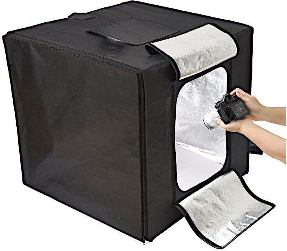 Fotografický stan LSD40, šedý interiér s uspořádanými světelnými tabulemi a vysokým jasem světla pro časově i pracovně nenáročné snímky.Má dvojité světelné panely, jejichž polohu lze libovolně nastavit. Stan má před zdroji LED difuzér - ten umožňuje, aby byl světelný paprsek přibližně stejně dlouhý i mírný.Chcete-li pořizovat snímky shora, je třeba difuzér sejmout. Pokud však chcete pořizovat sním...