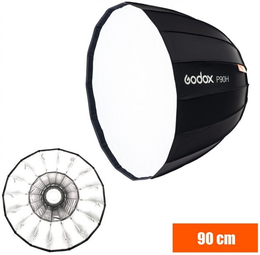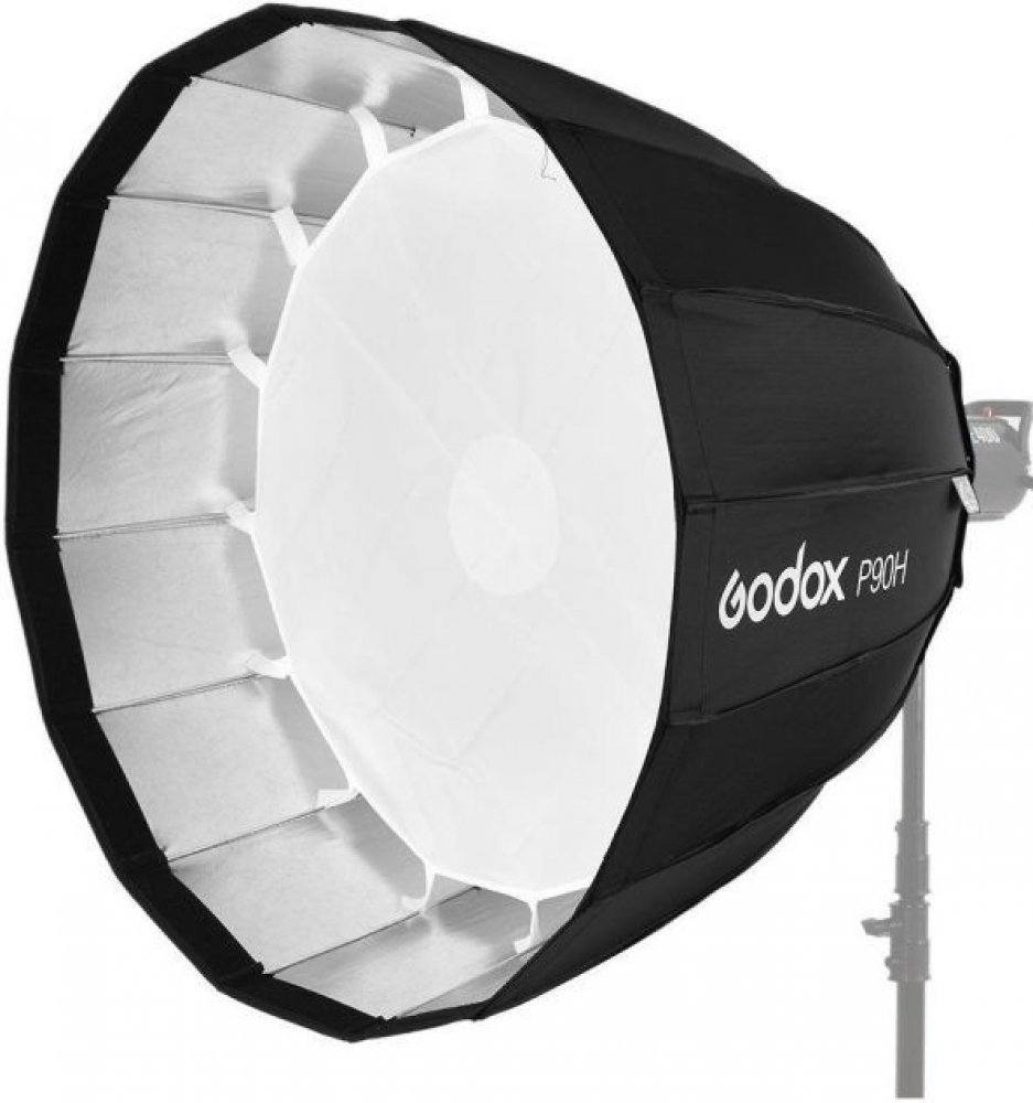 Godox P90H je hluboký parabolický softbox (šestiboký ), s vyšší teplotní odolností – až 85⁰C. Tento deepbox nabídne měkké světlo s kontrastnějším okrajem, čímž dodá fotografii hloubku. DeepBox P90H je ideální pro portrétní, fashion či glamour fotografii. DeepBox P90H je dodáván se dvěma difuzéry – vnitřní a vnější, díky kterým můžete regulovat tvrdost světla. Vnitřní difuzér má zesílený střed pro eliminaci hot-spotů. P90H je tvořen pevnou látkou a šestnácti teplotně odolnými, kovovými pruty, které jsou uchycené v kovovém speed-ringu, který je opatřen výměnným adaptérem pro systém Bowens. Celý systém je poměrně snadno sestavitelný a přenosný. Hodí se i pro práci v terénu. Parametry Průměr deepboxu je 90cm, hloubka je 69,4cm, váha je pouhých 2,04Kg. Obsah balení Vnější plášť deepboxu, vnitřní difuzér, vnější difuzér, speedring s adaptérem pro Bowens a šestnáct napínacích prutů. Adaptér Bowens je možné vyměnit za jiný, dle nabídky.