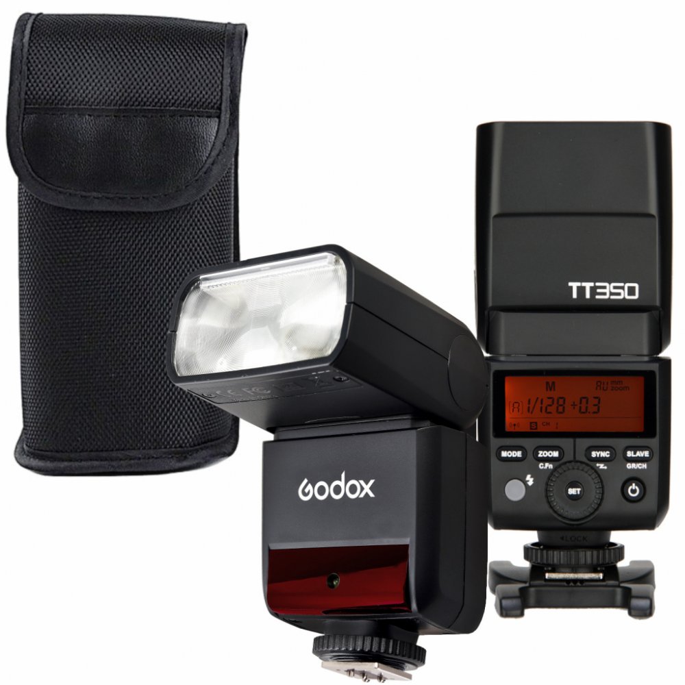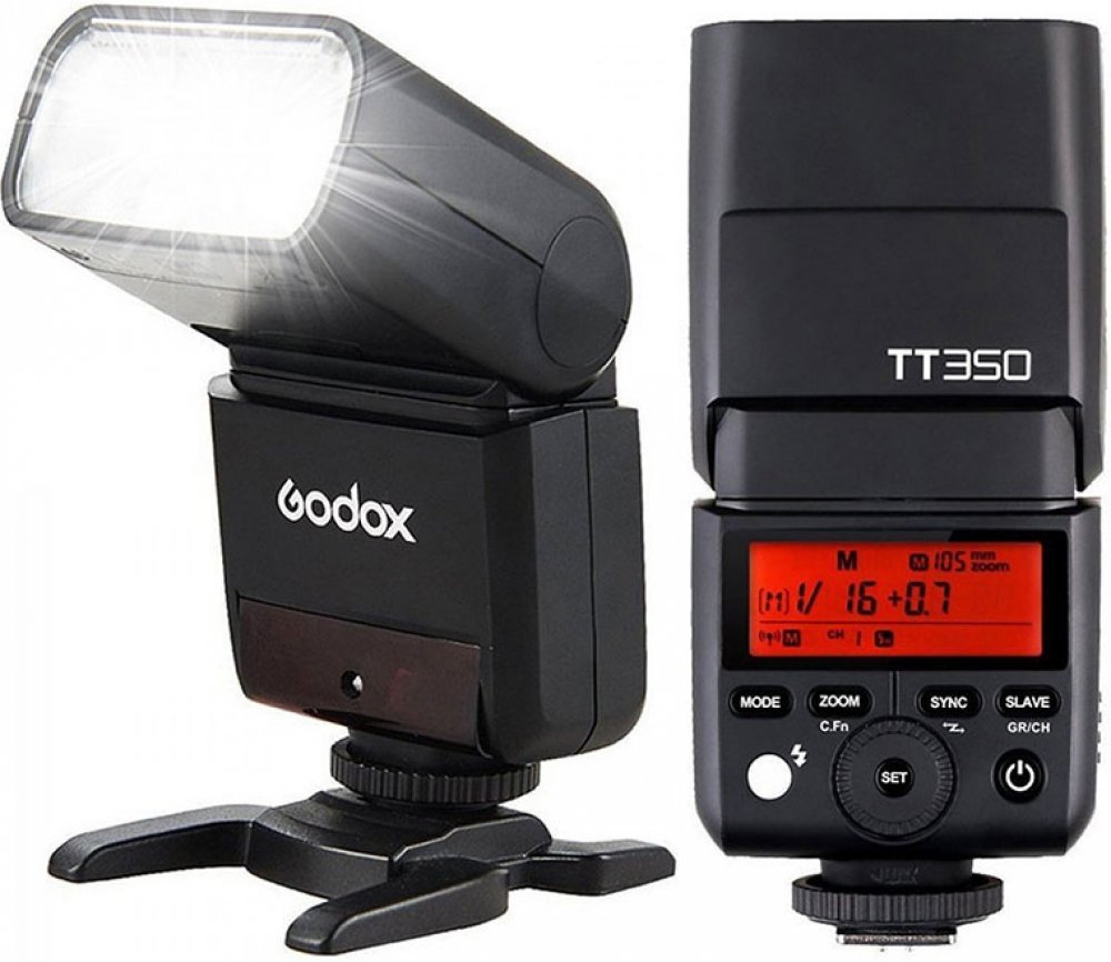 Godox TT350 je malý, lehký (jen 200g vážící) externí blesk, který díky své vysoce kompaktní konstrukci snadno zapadne do každého cestovního zavazadla, brašny nebo batohu. Nabídne plnou podporu komunikace TTL, vysokorychlostní synchronizaci (HSS až do 1/8000s) a směrné číslo 36 (při ISO 100 / 105mm). Blesk je napájen dvěma tužkovými bateriemi (velikost AA). Na plný výkon se blesk nabije už za 2.2 vteřiny.
