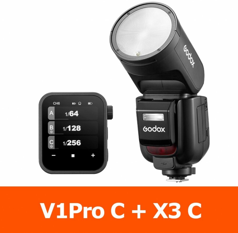 Blesk s kruhovou hlavou Godox V1 s Li-ion baterií, která umožňuje nabití na plný výkon za méně než 1.5s a poskytne dostatek energie až na 480 záblesků na plný výkon. Blesk má v sobě vestavěný radiový systém Godox X (2.4GHz). TTL , HSS. + Godox Xpro-C For Canon Externí speedlite blesk Godox V1 je prvním kompaktním speedlite bleskem od Godoxu, který je osazen kruhovou zábleskovou hlavou. Disponuje výkonem 76Ws a má plnou podporu TTL a vysokorychlostní synchronizace (HSS – až 1/8000s). Na rozdíl od klasických externích blesků s obdélníkovou hlavou může poskytnout přirozenější kruhové podání světla. Speedlite blesk Godox V1 je napájen výměnnou Li-Ion baterií. To mu umožňuje dosáhnout až 480 záblesků na plný výkon a zkrácení dobíjecího času na plný výkon na méně než 1.5s. Blesk má v sobě vestavěný radiový přijímač systému Godox X 2.4G. Může tak být použit jako Master (řídící) blesk i jako Slave (řízený) blesk. Při použití řídící jednotky Godox X1T-S nebo Xpro je možné blesk na dálku synchronizovat i měnit jeho parametry. Je také možné využívat vysokorychlostní synchronizaci. Hlava blesku je vybavena magnetickým portem, díky kterému můžete rychle a snadno použít velkou škálu různého příslušenství (modifikátory, filtry, reflektory), např. sadu magnetického příslušenství Godox AK-R1 (dokupuje se zvlášť). Přednosti blesku Godox V1Plně podporuje TTL vysokorychlostní synchronizaci (HSS – až 1/8000s) Kruhová záblesková hlava poskytuje přirozenější světelný pattern než běžné obdélníkové hlavy speedlite blesků. Maximální výkon 76Ws (směrné číslo 28 při ISO 100 a zoomu 50 mm) Výměnná Li-ion baterie (7.2V/2.6Ah), rychlé dobíjení (