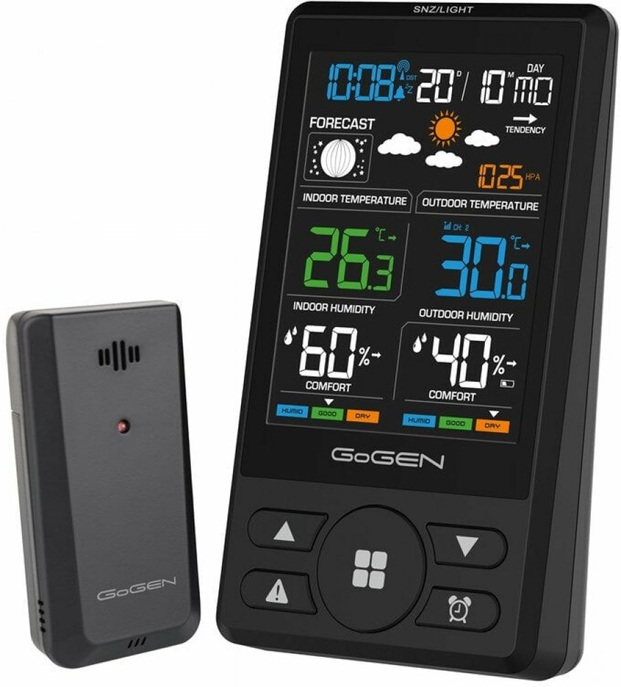 Meteorologická stanice, externí čidlo v balení, předpověď počasí, vnitřní/venkovní teplota a vlhkost, čas řízený rádiovým signálem, záruka 4 roky po registraci