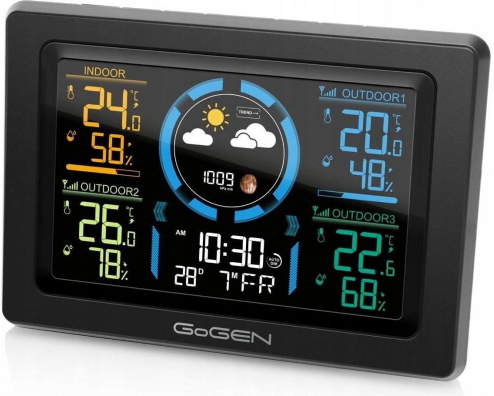 Meteostanice GoGEN ME3397 bude perfektní pro každého, kdo chce měřit teplotu a vlhkost na třech různých místech současně. Umístit je mů...