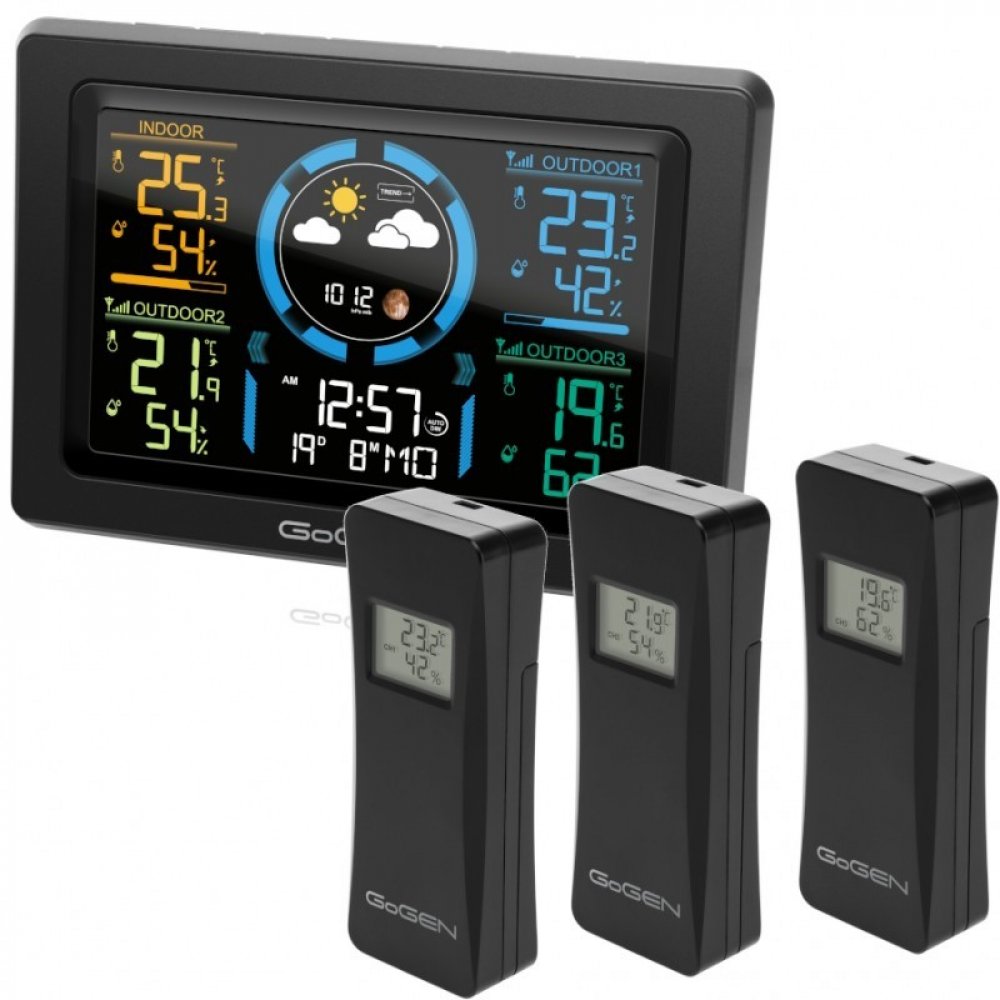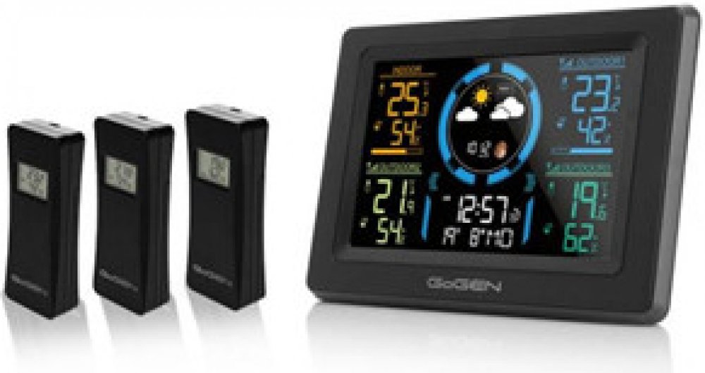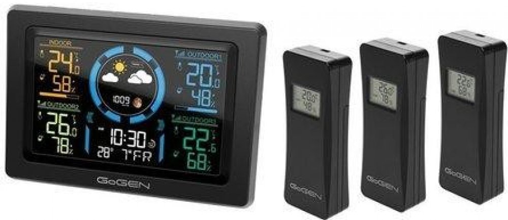 Meteostanice Gogen ME3397B s barevným displejem, černá, 3 čidla